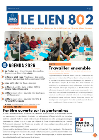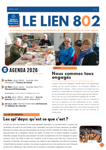 Le lien 802, c'est comme un mensuel. Ce 4 pages permet aux bénévoles de la Délégation Picarde de se tenir informés de l'actualité sur les 6 territoires de l'Aisne et de la Somme.